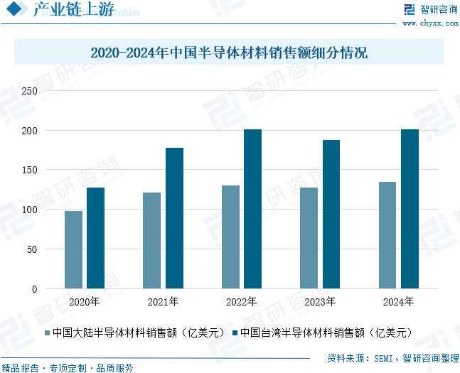 半导体材料作为现代电子工业的基础核心,凭借其独特的电学特性在半导体器件和集成电路制造中占据着不可替代的战略地位。作为半导体产业链中技术门槛最高、细分领域最复杂的环节,半导体材料体系主要涵盖晶圆制造材料和封装材料两大类别。近年来,随着中国大陆晶圆制造产能的快速扩张和封测技术的持续升级,国内半导体材料市场呈现出强劲的增长态势。SEMI数据显示,2024年中国台湾以200.9亿美元的销售额,连续第15年成为全球最大的半导体材料消费地区,主要得益于台积电等晶圆代工巨头为苹果、AMD、英特尔、英伟达等国际科技企业代工生产最先进制程芯片所带来的巨大材料需求;与此同时,中国大陆半导体材料市场也保持稳健发展,全年销售额达到134.58亿美元,实现5.31%的同比增长,展现出中国半导体产业链日益提升的配套能力和市场活力。中国半导体材料销售额的持续增长,为压力传感器等半导体器件的创新发展提供了坚实的材料基础。
